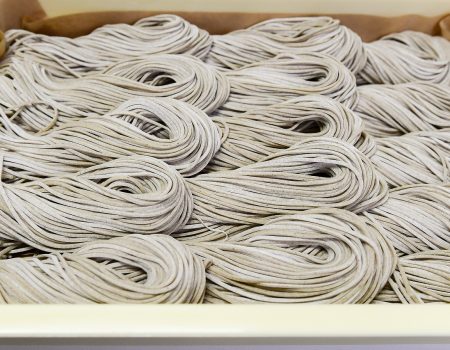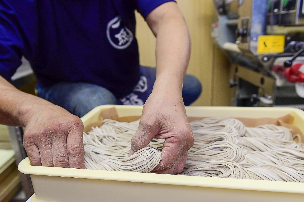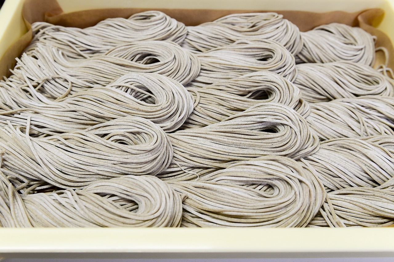 「蕎麦粉はどれにしようか、太さはどうしようか、平たい麺がいいのかなど、とにかく打っては試食を繰り返しました」と宗片さん。最後にたどり着いたのが、ざる蕎麦にも肉そばにも合う、のど越しのよい今の麺でした。