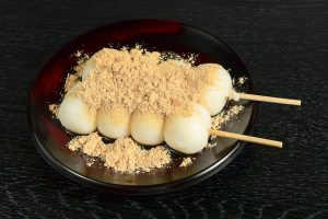 「一聴のきびだんご」は、だんごの下に黒蜜が敷いてありるので、たっぷりきな粉と一緒にどうぞ!