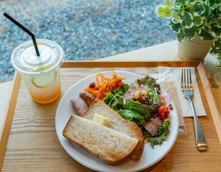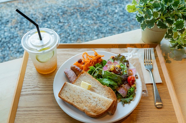 朝8時30分からオープンしているカフェ。朝ごはんにピッタリのメニューもあります。