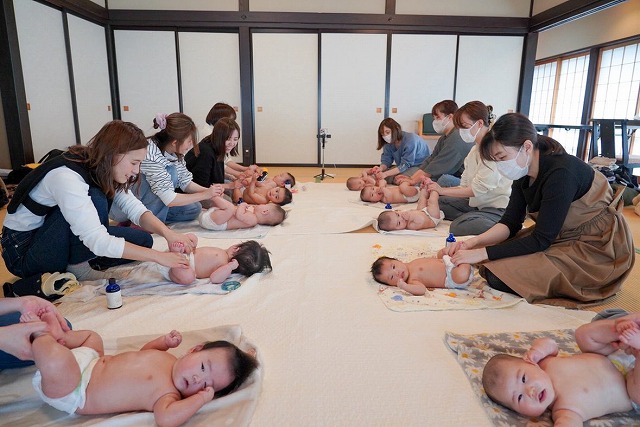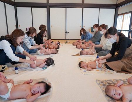 志田いづみ先生(ベビーマッサージカエラ)のベビーマッサージの様子