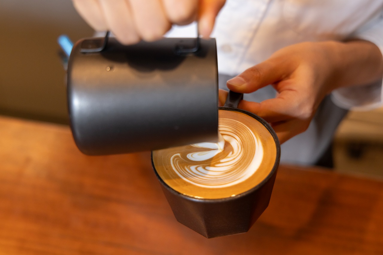 カフェラテにはバリスタによる可愛らしいラテアートが描かれます。バリスタは3名ほど在籍し、カウンターでデザインする姿を見ることもできます。「撮影されると緊張するので、一声かけてもらえると嬉しいです。」と小林さん。思わず写真に収めたくなる瞬間です。