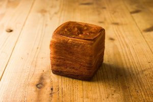 発酵バターを練り込んだ、リッチなデニッシュ食パン。食味を生かすためにも、縦に切り分けトーストするのがおすすめ。ご家庭用のほか、手土産としても人気とのこと。ジャムを塗るだけでも、たちまちごちそうに。