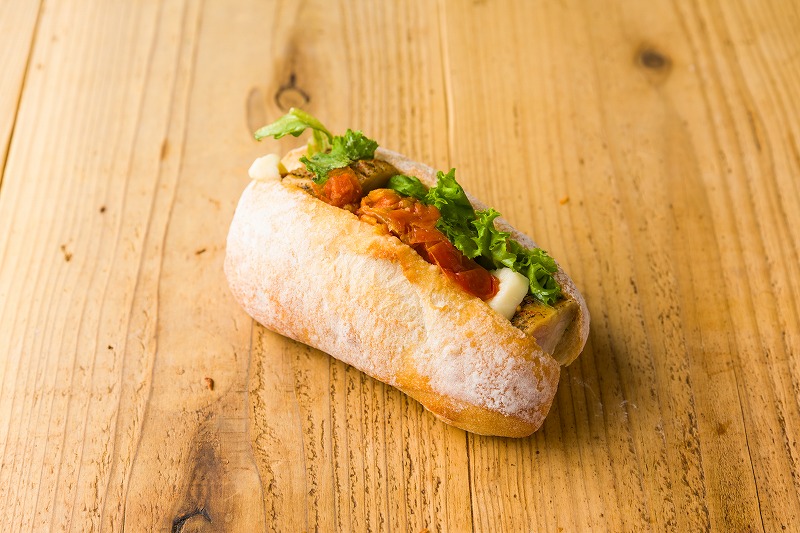 ドライトマトを使った、贅沢なサンドイッチ。バゲット・トラディションの生地を使い、バジルチキンやモッツァレラチーズに合わせました。まさにシンプルイズベスト。完成された味わいです。
