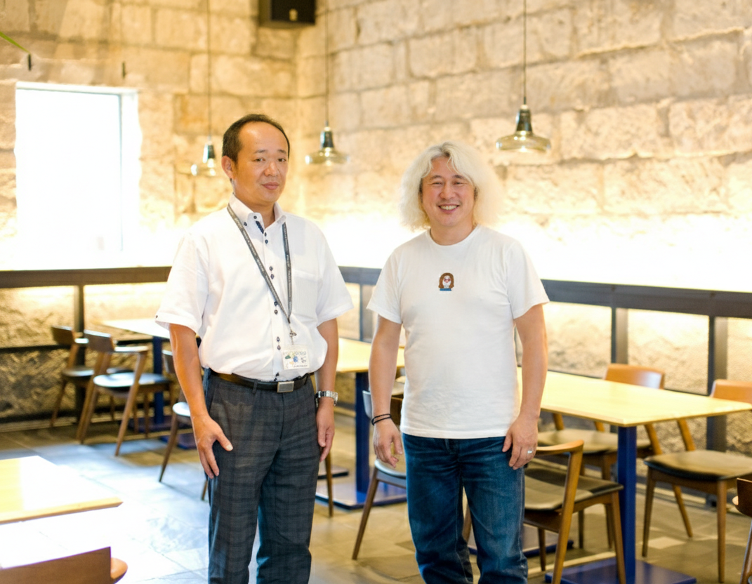 10月の『名店セレクション』では、山形トヨタ寒河江店の私こと吉田が、営業課長の青柳とともに、寒河江市の『GEA』さんへお邪魔しました。今からさかのぼること60年ほど前、寒河江市の酒蔵を移築したという店舗は、どこか外国のような雰囲気を醸しながら、JR寒河江駅舎のすぐ隣に建っていました。広い敷地にある二つの棟は、ファッションとライフスタイル、そして食のスペースから構成され、2015年のオープン以来、地元山形はもちろん、全国からの注目を集めています。今回の会場となったのは、そんな『GEA』にあるレストラン『Restaurant 0053』。いったいどんな取材になるのか、楽しみでなりません。